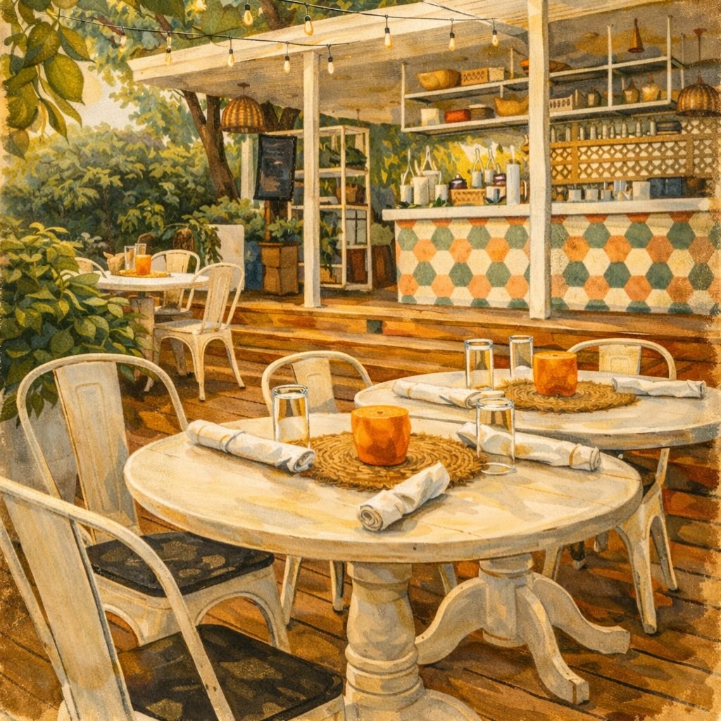 Ambient Cafe Experience: Zenâlike atmosphere with lush décor and calm patio seating sets it apart from typical fastâfood or highâtraffic cafes.