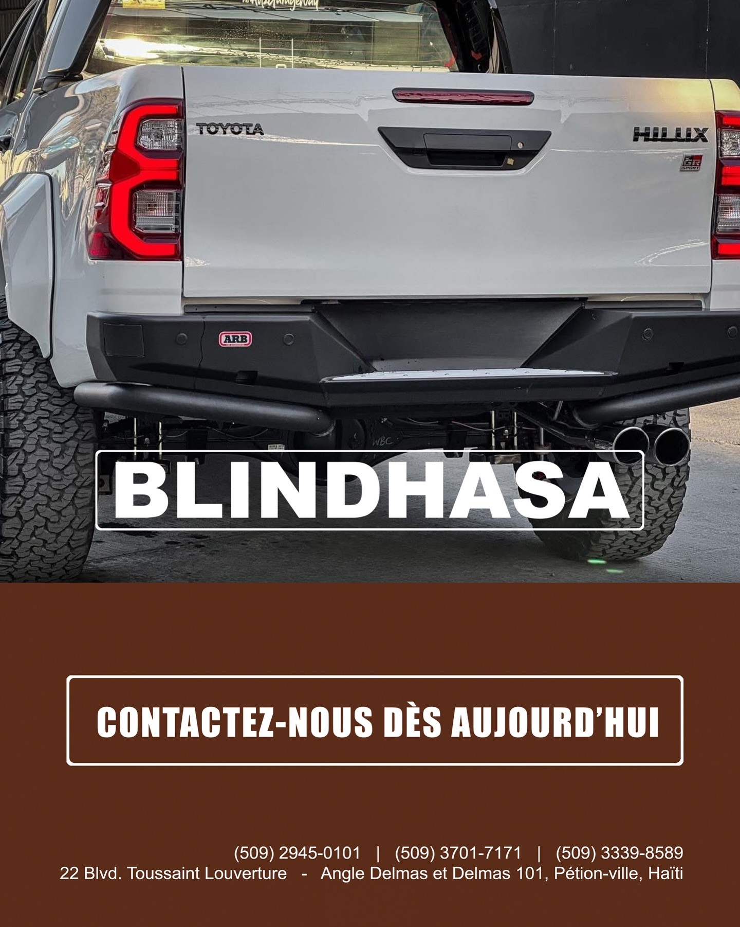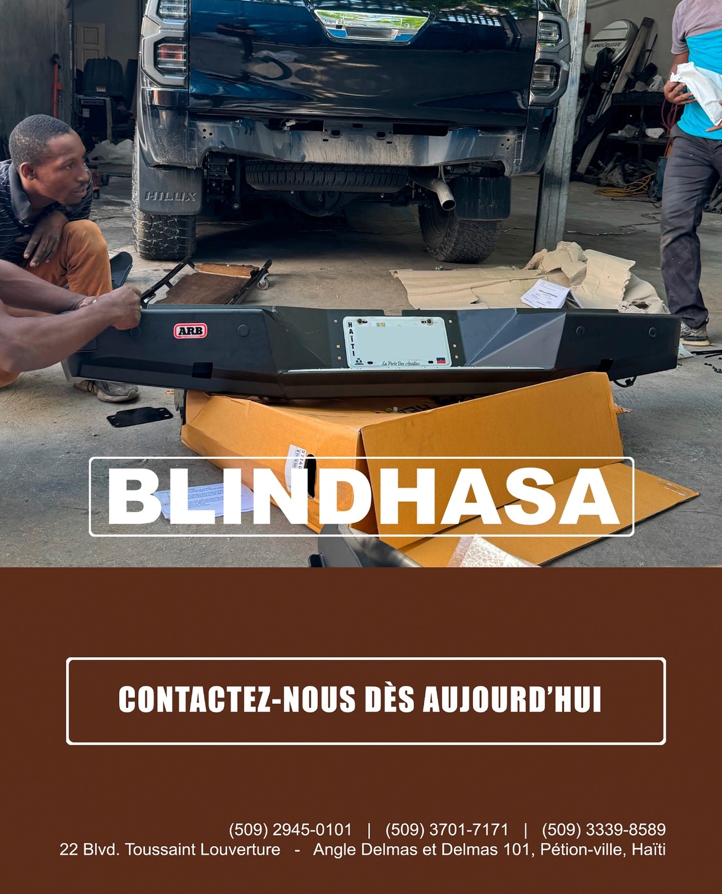 Blindhasa Haiti (often styled Blindhasa Service Center) is a Port-au-Prince-based company specializing in advanced automotive, off-road, and armored vehicle solutions, along with 4×4 accessories and related technical services.
