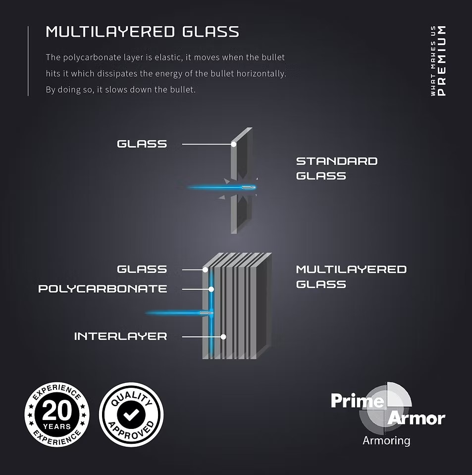 Driven by a mission of “Safety, Durability, Innovation—For Every Journey, Every Mission,” Prime Armor delivers customized protection solutions for government entities, financial institutions, embassies, private security firms, and high-net-worth individuals.