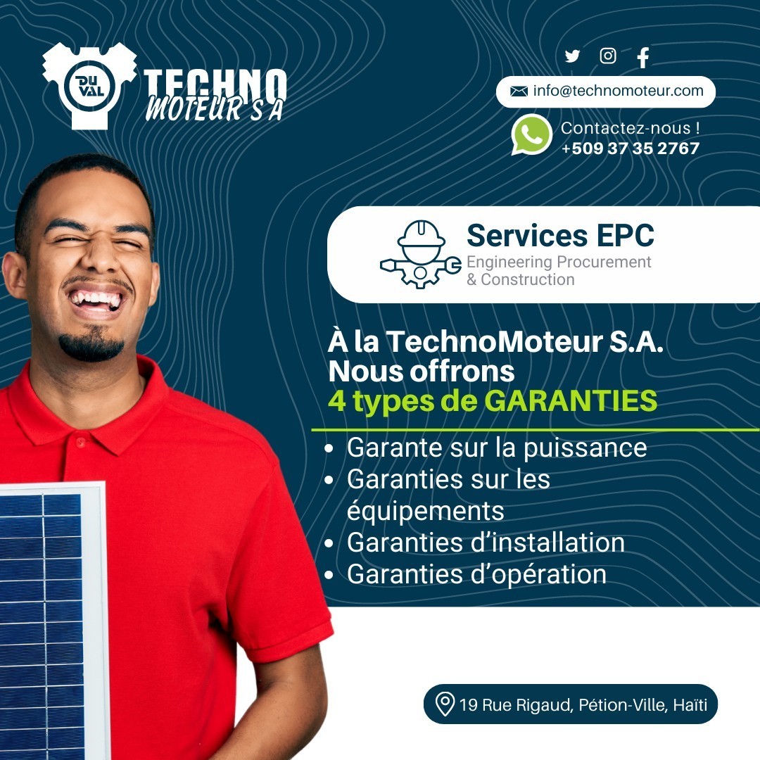 The company’s mission is to enhance energy independence in Haiti by providing scalable, durable, and efficient power systems tailored to local conditions. Compared to traditional generator suppliers, Technomoteur stands out by offering full EPC capabilities, enabling clients to move from concept to operational energy infrastructure with a single trusted partner.
