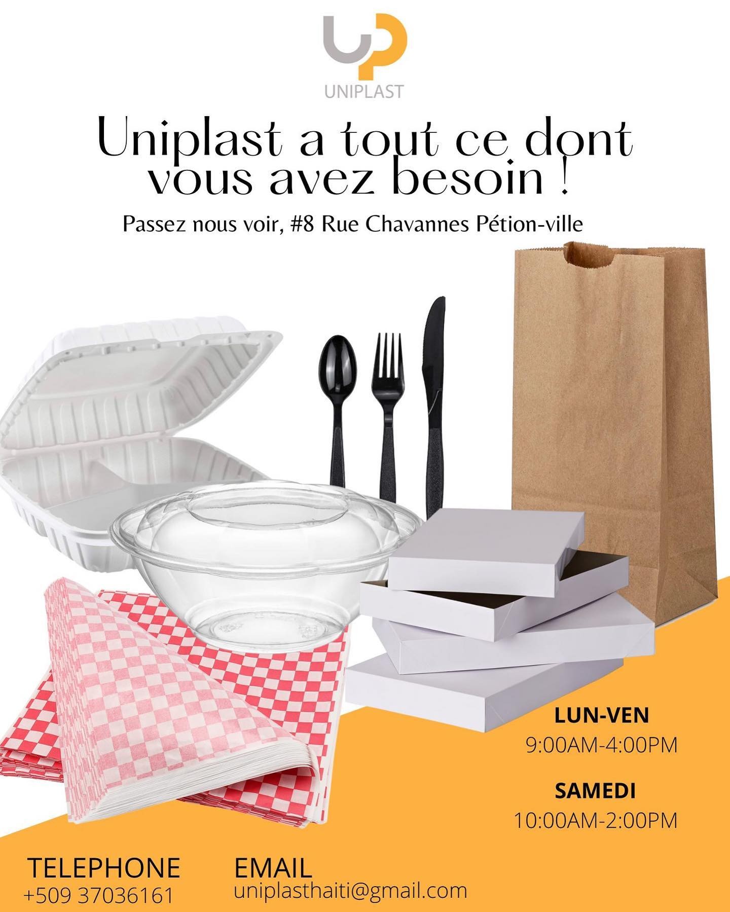 With a strong emphasis on accessibility and convenience, Uniplast Haiti offers a wide selection of essential packaging products—from food containers and disposable cups to plastic bags and takeaway supplies. Its mission centers on helping businesses operate efficiently by ensuring consistent access to quality packaging materials.