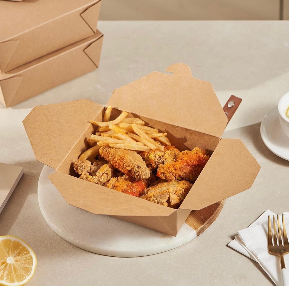 - Takeaway boxes (clamshell style)